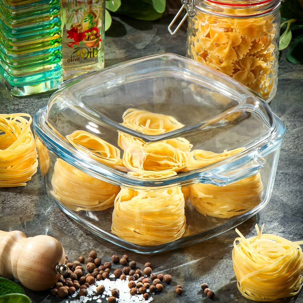 Стеклянная кастрюля с крышкой BORCAM, объем 2100 мл, для духовки, для запекания